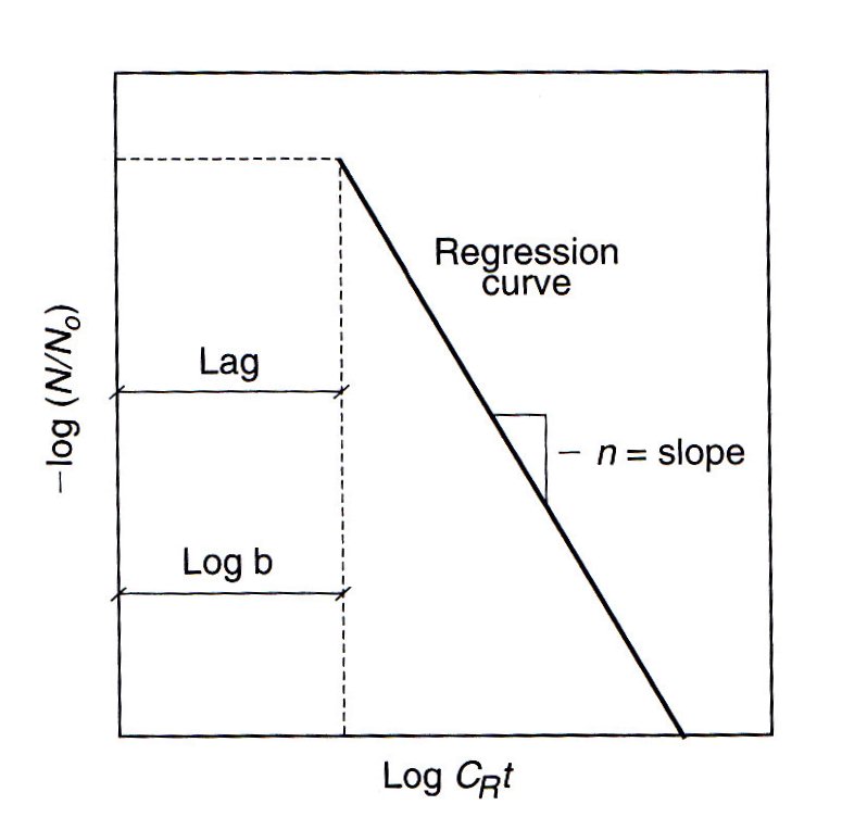 b : nilai dimana log N/No = 0 pada kurva inaktivasi